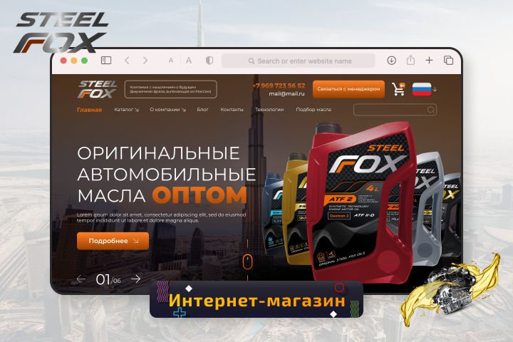 Интернет магазин автомобильных масел для ПРЕМИУМ сегмента Поставки напрямую из ОАЭ За основу был взят старый одностраничный сайт, и с доработанной концепцией был разработан дизайн крупного интернет магазина с личным кабинетом