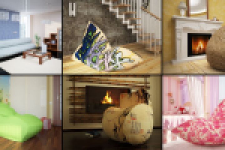моделинг бескаркасной мебели и визуализация ее в различных интерьерах, в зависимости от типа ткани и рисунка