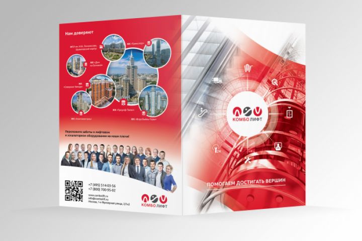 Буклет для выставки, для компании "Комболифт" поставка, монтаж, обслуживание, продажа комплектующих для лифтов, эскалаторов, подъемников.