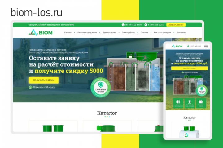 Дизайн и вёрстка сайта на Tilda. Септики под ключ. Лендинг с элементами интернет-магазина (каталог, корзина). Разработаны версии для ПК, планшетов и мобильных устройств. Примерно половина блоков на ZERO.