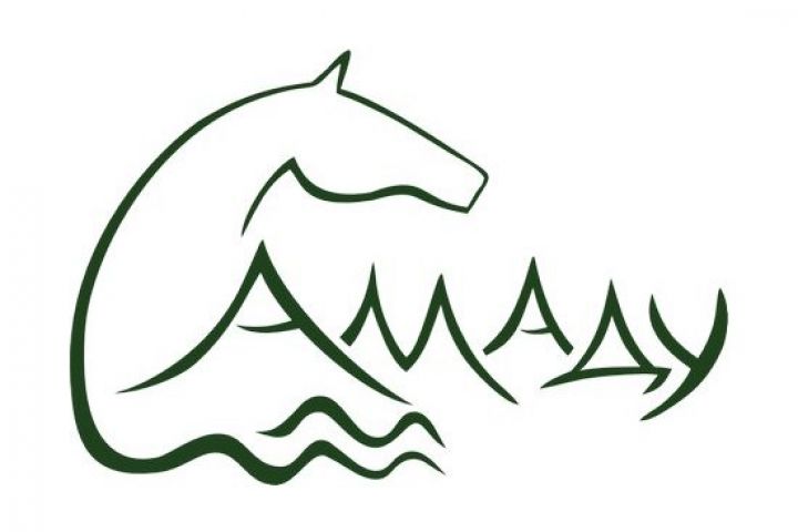 Логотип алтайского туристического оператора и турбазы "Амаду-тревел", занимающейся конными и водными путешествичями по Алтаю