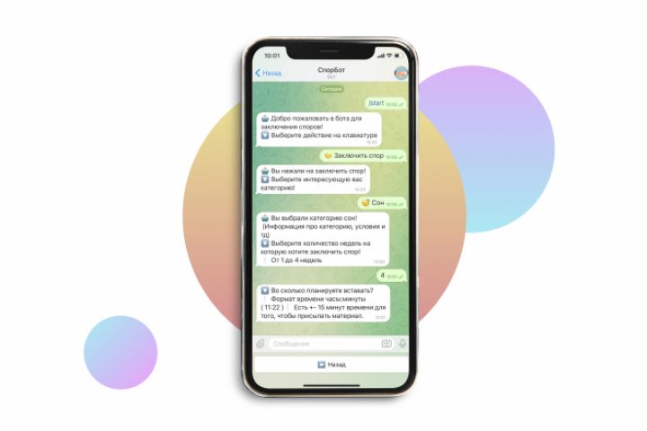 Функционал: бот для заключения спора (декларации) с "самим собой" на любую категорию: сон, тренировки, чтение и т.п. на срок от 1 до 4 недель с вводом времени проверки (например, тренировка в 08:00, бот пишет в это время и ждет твоего ответа + требует фото-подтверждение (которое модерируется)), имеются и дополнительные проверки достоверности. Спор заключается на любую сумму (от 10 руб. до бесконечности), если свое обещание пользователь не сдержал - деньги не возвращаются, если сдержал - деньги возвращаются в автоматическом режиме. Подключена платежная система, ввод и вывод средств, техподдержка и просмотр баланса пользователя.
