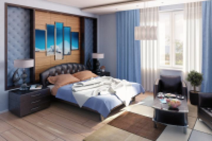Разработка дизайна , моделирование декоративных гипсовых панелей, визуализация их в интерьере спальни.
