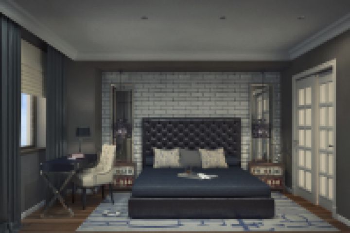 Визуализация спальни в стиле Loft площадью 15 м2 в московской квартире, дневное освещение.
