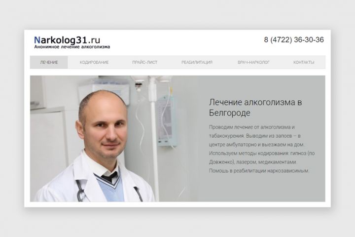 Работа по поисковой оптимизации сайта для частного врача нарколога в Белгороде, вывод в топ выдачи Яндекс и Google.