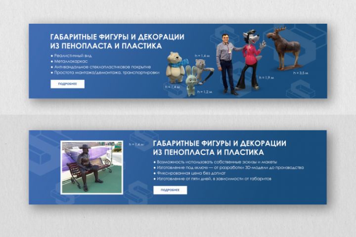 Задача: Создать баннеры для компании SPRINT 3D (3D-СКАНИРОВАНИЕ, 3D-МОДЕЛИРОВАНИЕ, 3D-ПЕЧАТЬ). Продемонстрировать работы компании.