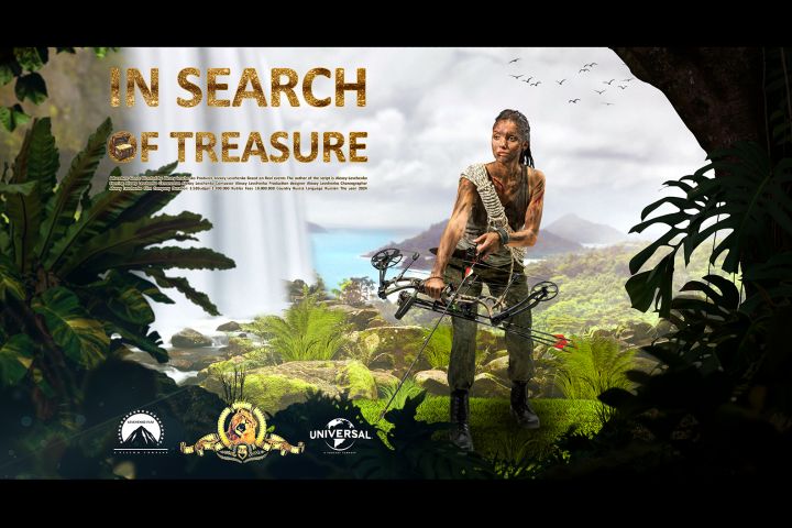 Постер создан на тему приключенческого фильма в программе Adobe Photoshop для практики в рамках обучения на SkillBox.