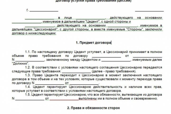 Договор уступки права требования 2019