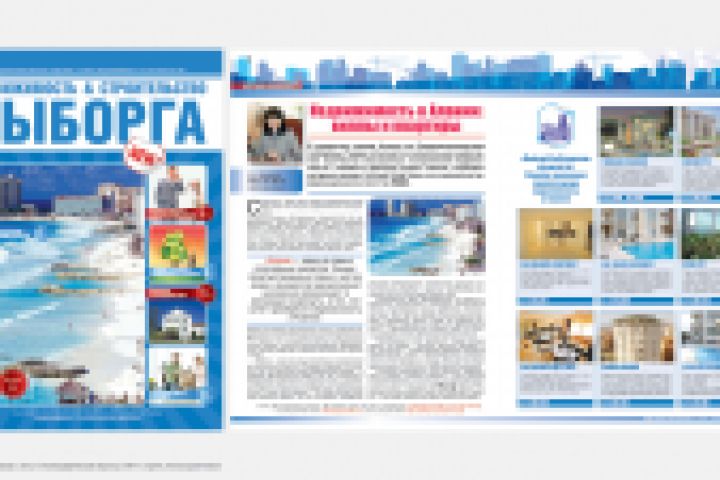 Дизайн-макет, ежемесячная верстка журнала «Недвижимость и строительство Выборга», подготовка к печати, 16 п., А4.