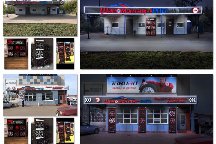 Визуализация светового оформления точек шиномонтажа.
