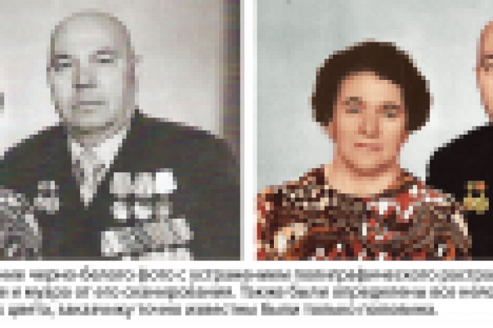 Раскрашивание черно-белого фото с устранением полиграфического растра на исходнике и муара от его сканирования. Также были определены все неясно видные награды и их цвета, заказчику точно известны были только половина.