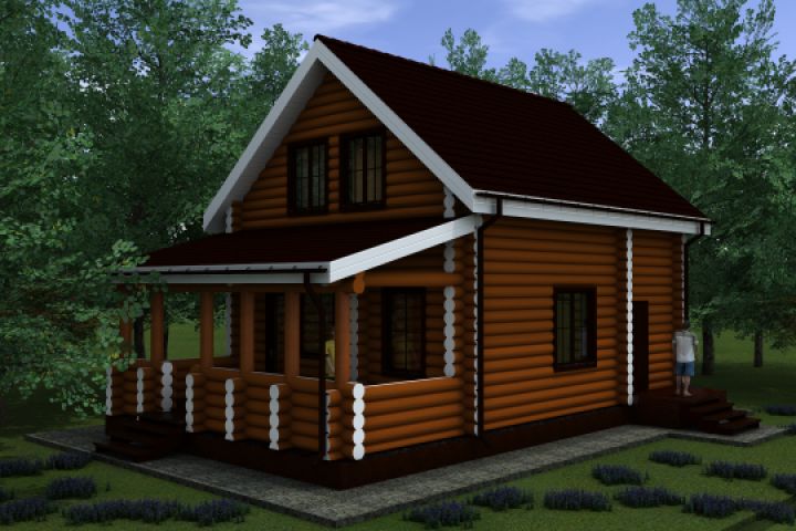 Одноэтажный жилой дом с мансардным этажом. из бревна ручной рубки