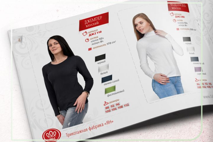 создание каталога базовых моделей для трикотажной фабрики (А5, 16страниц)
