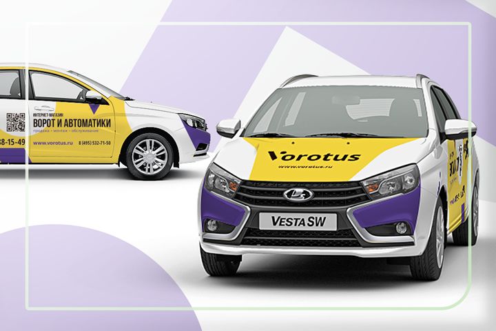 Брендирование Lada Vesta SW для интернет-магазина ворот и автоматики (продажа и монтаж автоматических механических ворот разных типов: откатных, распашных, гаражных, секционных, шлагбаумов)
