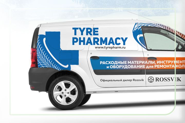 Оформление корпоративного транспорта Lada Largus Furgon для поставщика материалов и химических реагентов для ремонта колес как грузового, так и легкового транспорта, а также мотоциклов и велосипедов