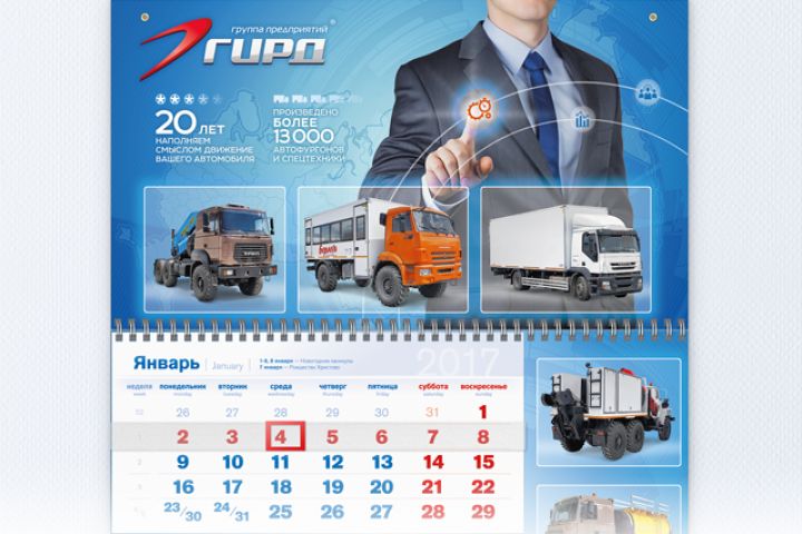 дизайн квартального календаря А4+ (расширенного) для производителя автомобильной спецтехники