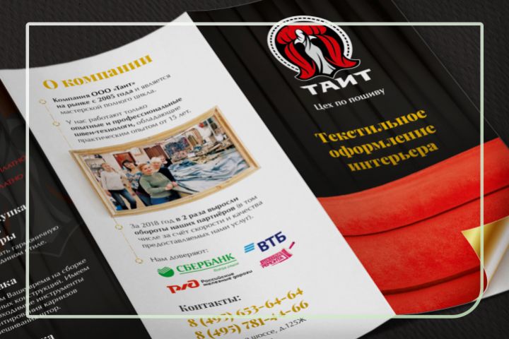 Разработка дизайна евробуклета для цеха по пошиву штор и иного текстиля (А4, 2 фальца).
