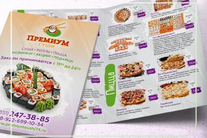 дизайн буклета (А5, 1фальц) доставки суши и пиццы