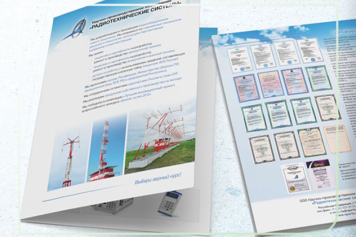 дизайн презентационного буклета (А3, 1 фальц) оборудования систем посадки, навигации и управления воздушным движением