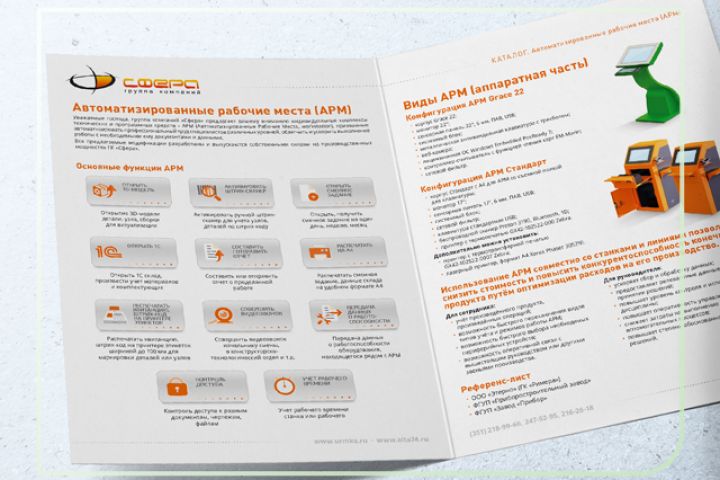 дизайн презентационного буклета (А3, 1 фальц) для производителя автоматизированных рабочих мест (АРМ)