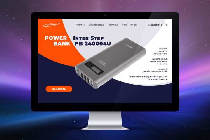 Первый экран Landing Page по продаже зарядных устройств