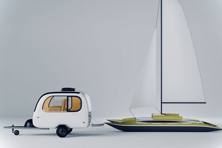 Визуализация катамарана для сцены с кемперемом