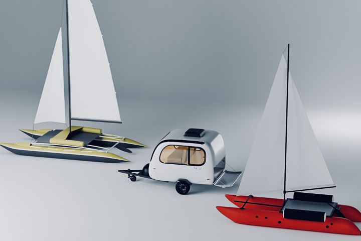 Необходимо было создать модели катамаранов для визуализации в сцене с кемпером.