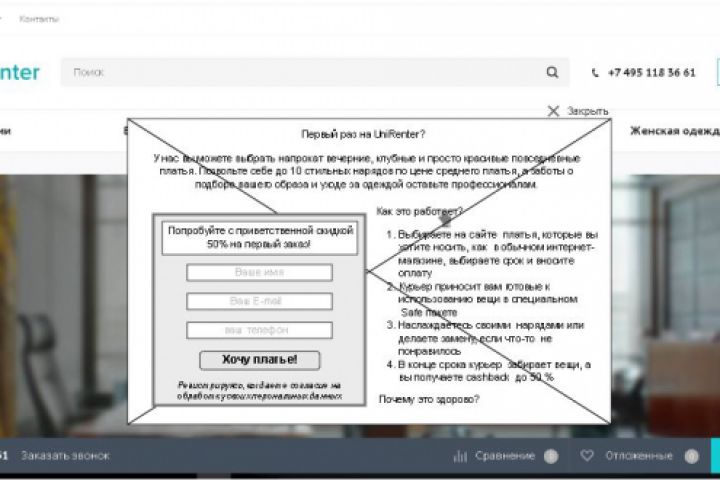 Баннер, который показывается новым пользователям сайта и предлагает приветственную скидку на первый заказ.
