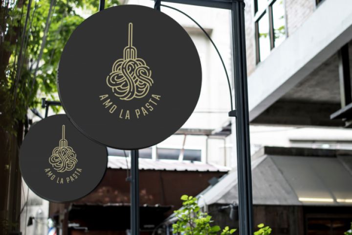 Название и логотип для итальянского кафе-пиццерии "Аmo la pasta" в переводе с итальянского значит "люблю пасту"