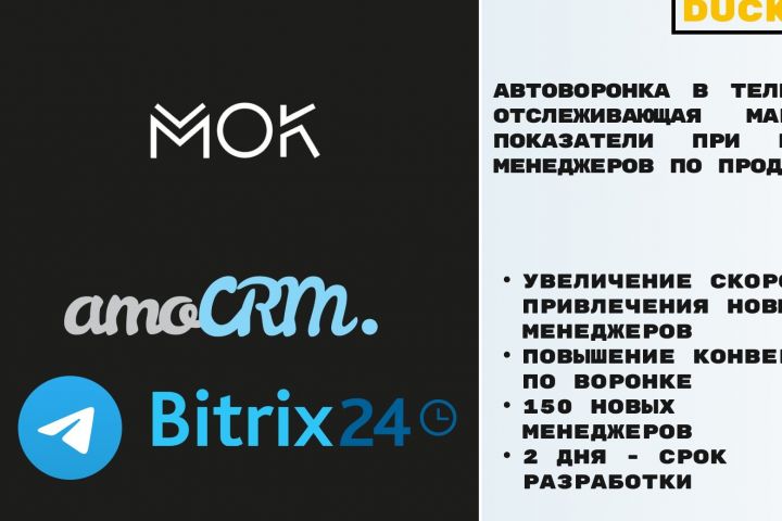 Телеграм-бот способен отслеживать маркетинговые метрики, проведена интеграция с AMO CRM и Битрикс24