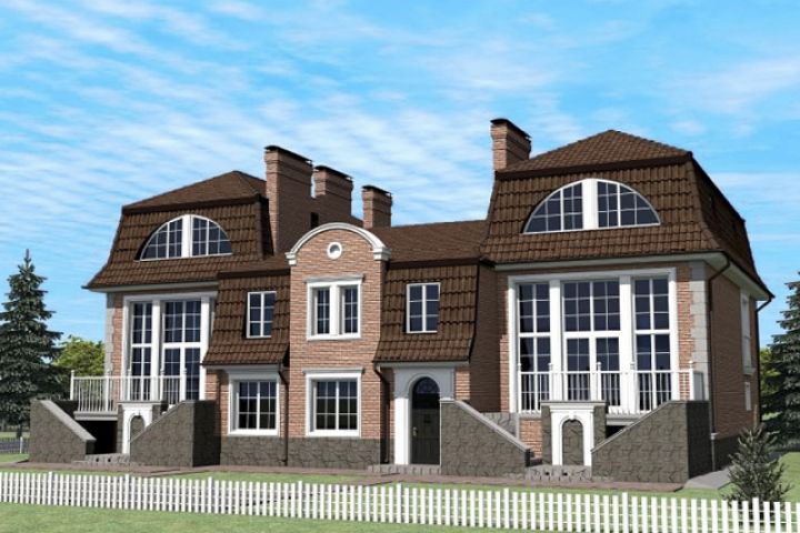 Разработка фасадов сблокированного жилого дома (4 секции) в викторианском стиле. Планировки разработал архитектор Глушков А.Е.