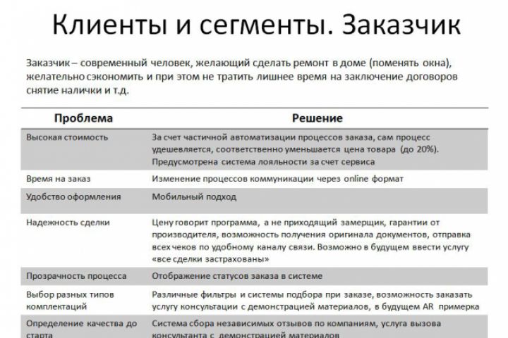 Проработка идеи разработки сервиса для компаний торгующих пластиковыми окнами. Описание аудиторий, их проблематики, ценности сервиса и с расчетом окупаемости сервиса.