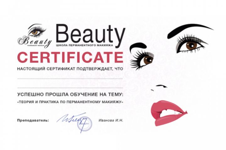 Дизайн сертификата о прохождении обучения по перманентному макияжу.