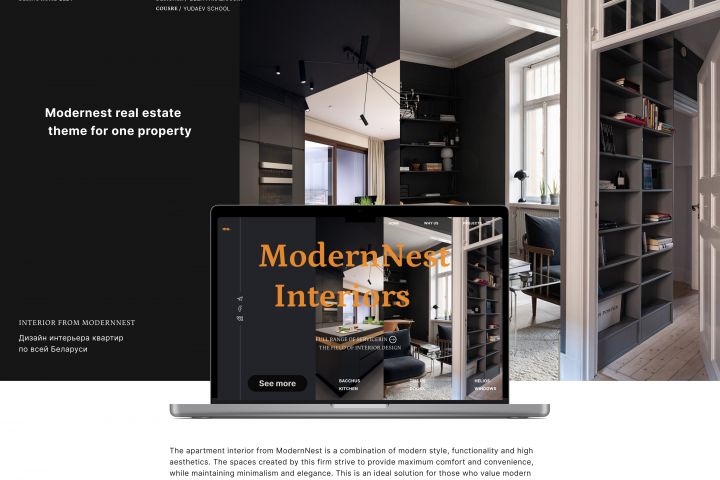 При создании дизайн сайта интерьер квартир Modernnest. Опиралась на следующие пункты: исследование и анализ,