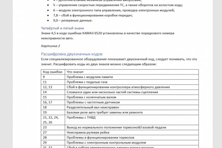 Задача - написать экспертную статью о кодах ошибок КАМАЗ 6520 Евро 4.