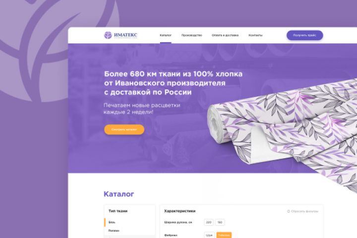 Сайт для компании ИМАТЕКС оптовая продажа тканей