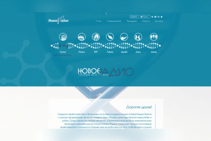 Разработка дизайна и верстка мультиязычного интернет радио - Новое Радио .