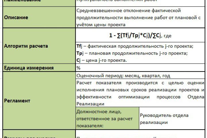 Блок регламентной информации позволяет дать понимание о том зачем используется конкретный показатель, каковы оптимальные периоды оценки цели, достижение которой он измеряет, а также иные значимые процессуальные стандарты.