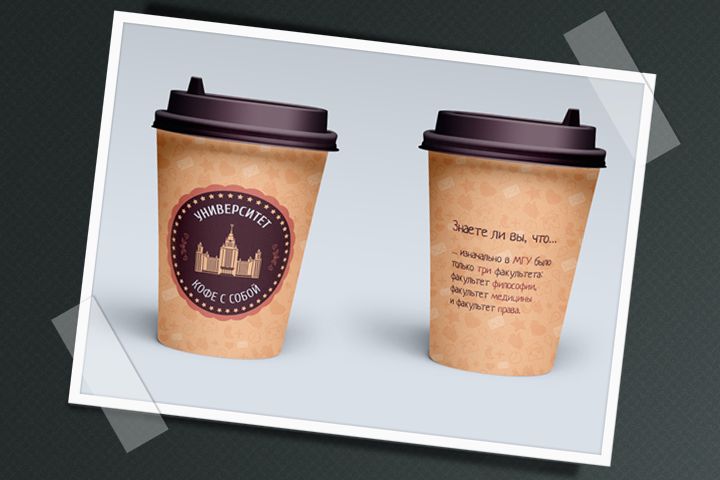 Оформление бумажных стаканчиков и торгового островка для продажи кофе с собой. 2015