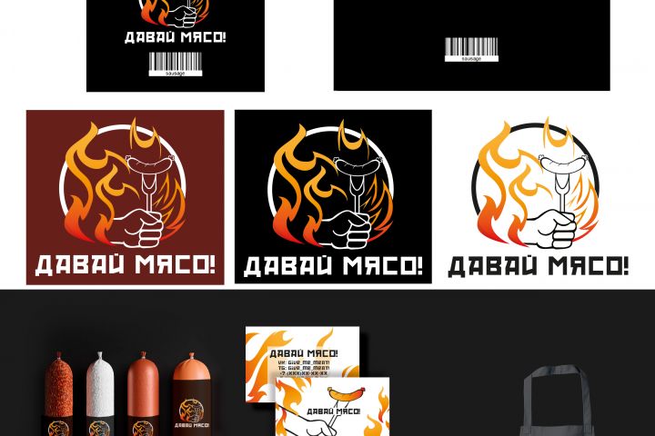 разработка лого и фирменного стиля для брендА колбасной продукции "давай мясо!"