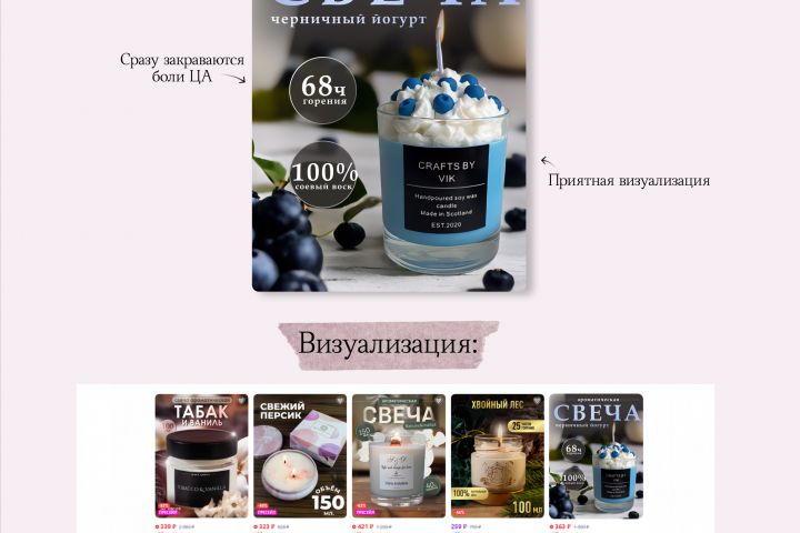 Разработка инфографика для свечи разрабатывался 1 день. Заказчик принял все без правок. Остальные действия по разработке описаны в портфолио