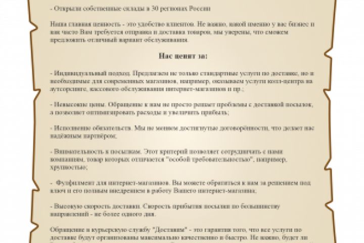 Текст страницы "о компании" для курьерской службы