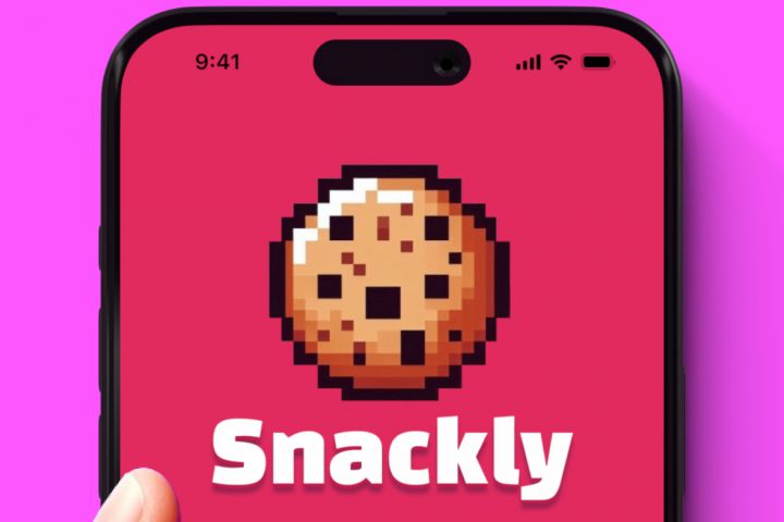 Логотип + mockup приложения Snackly Логотип "Пиксельное печенье" был создан с помощью нейросети. Текст и дальнейшая доработка выполнены мной