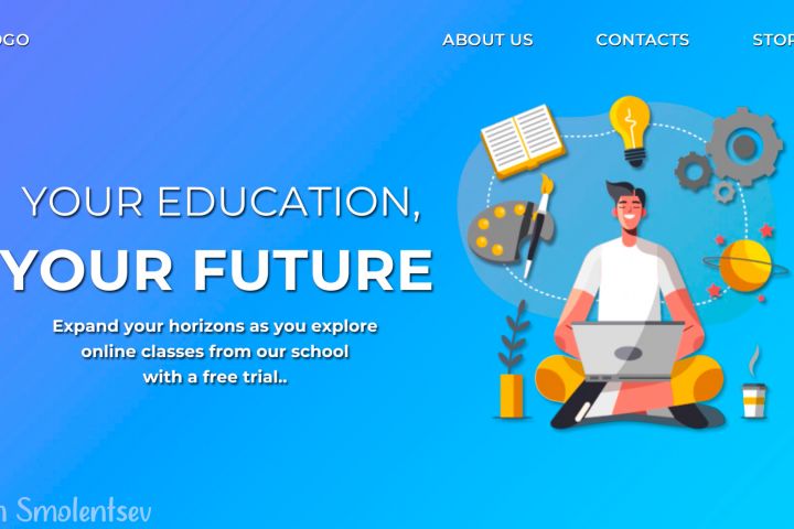 В данном проекте представлена страница сайта, посвящённого образовательным курсам по различным дисциплинам. В видео использовался шаблон проекта для Adobe Illustrator. После импорта в Adobe After Effects, каждый элемент проекта был анимирован по отдельности, а также добавлен всплывающий текст.