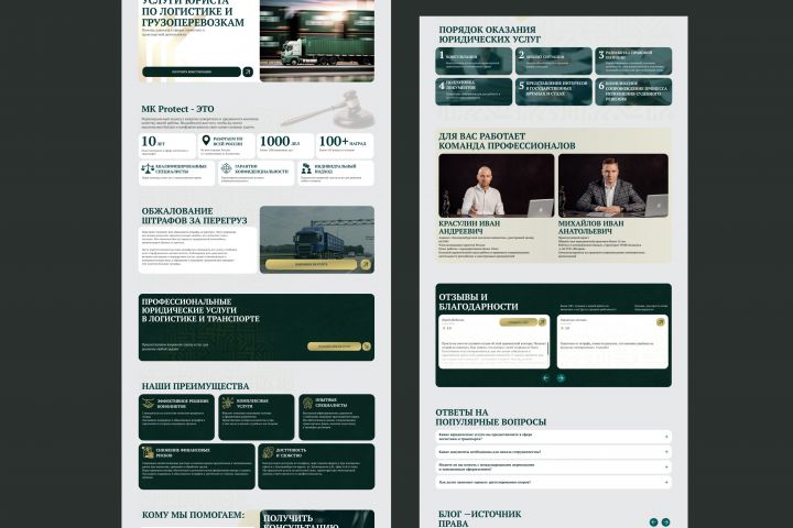 Одностраничный сайт для юридической компании, цель: создать приятный пользовательский опыт и повысить конверсии на сайте