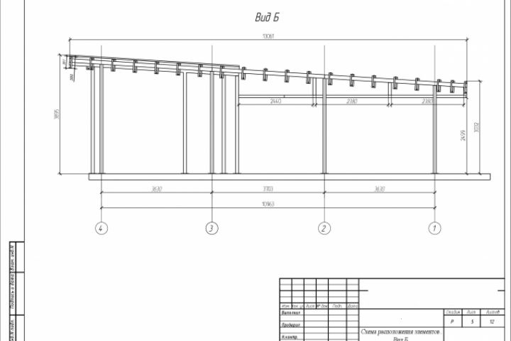 Металлический каркас навеса над зоной разгрузки продуктового магазина. Вид сбоку.