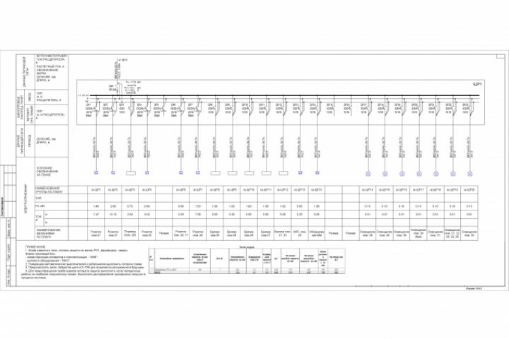 Однолинейные схемы щитов. Расчеты нагрузок и потерь в кабельных линиях.
