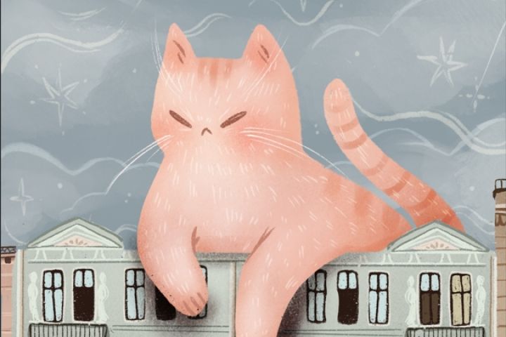 Illustrations for postcards featuring the streets of St. Petersburg with cats