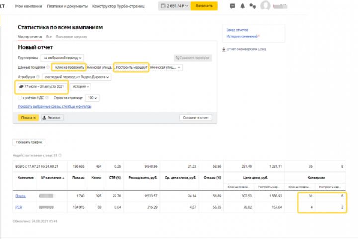 В результате за 36 дней было получено 43 конверсии. Потрачено на рекламу – 9848 рубля.