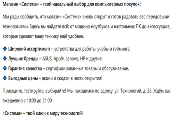 Рекламный текст